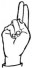 На ћирилици написано ЋИЛЕ РУДЈА састоји се из 9 слова [?]. Исписано ћириличном једноручном азбуком за глувонеме: